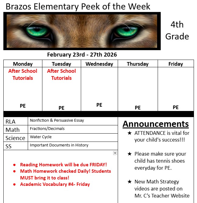 4th Grade Weekly Newsletter